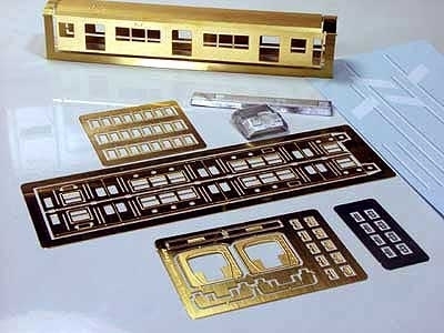 主に真鍮材をエッチング(腐食加工)やプレス、折り曲げしたものやホワイトメタルと呼ばれる合金を鋳造したパーツで構成されています。